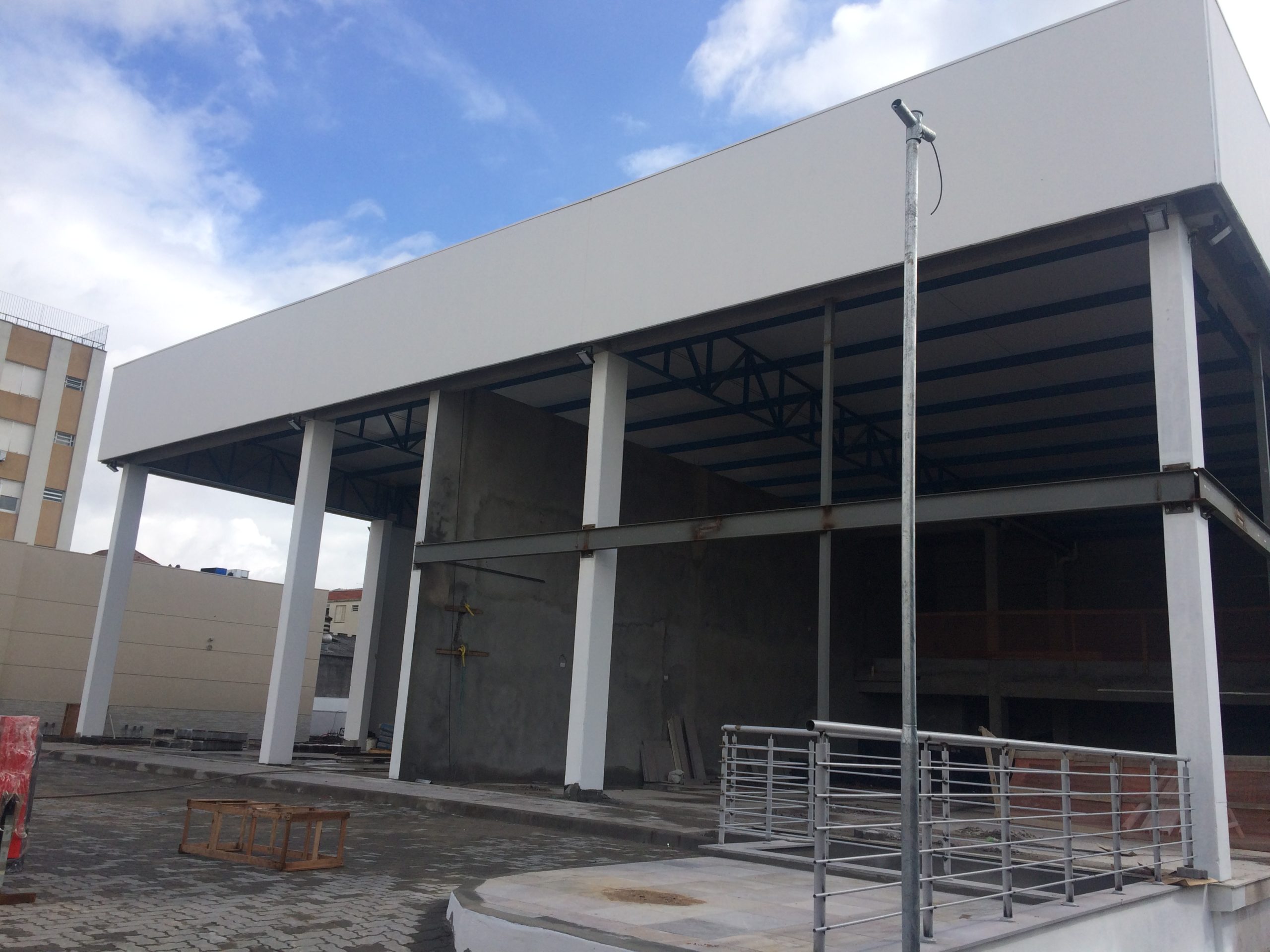 Obra Pré-moldada em duas edificações de dois pavimentos com área total de 3.220,84m², com estrutura pré-moldada em concreto e cobertura metálica.