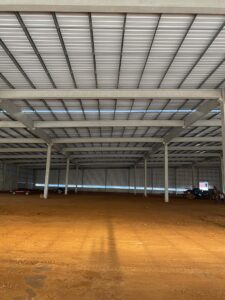 Obra Pré-moldada com área total de 8.889,80m² sendo pavilhão principal mais marquises, a obra tem uma largura de 80,61m e comprimento de 101,00m, contempla uma cobertura compostas por Vigas de concreto protendido de 24,00m, terçamento metálico e telhas zipadas térmicas com Lanternim, São 10,00m de pé-direito e com fechamentos laterais em telhas. Mantendo o nosso padrão de qualidade e seguindo sempre as necessidades do cliente em ter uma obra com o menor número de pilares internos e com a cobertura em concreto, obtivemos vãos livres internos de 20,00m x 24,00m.