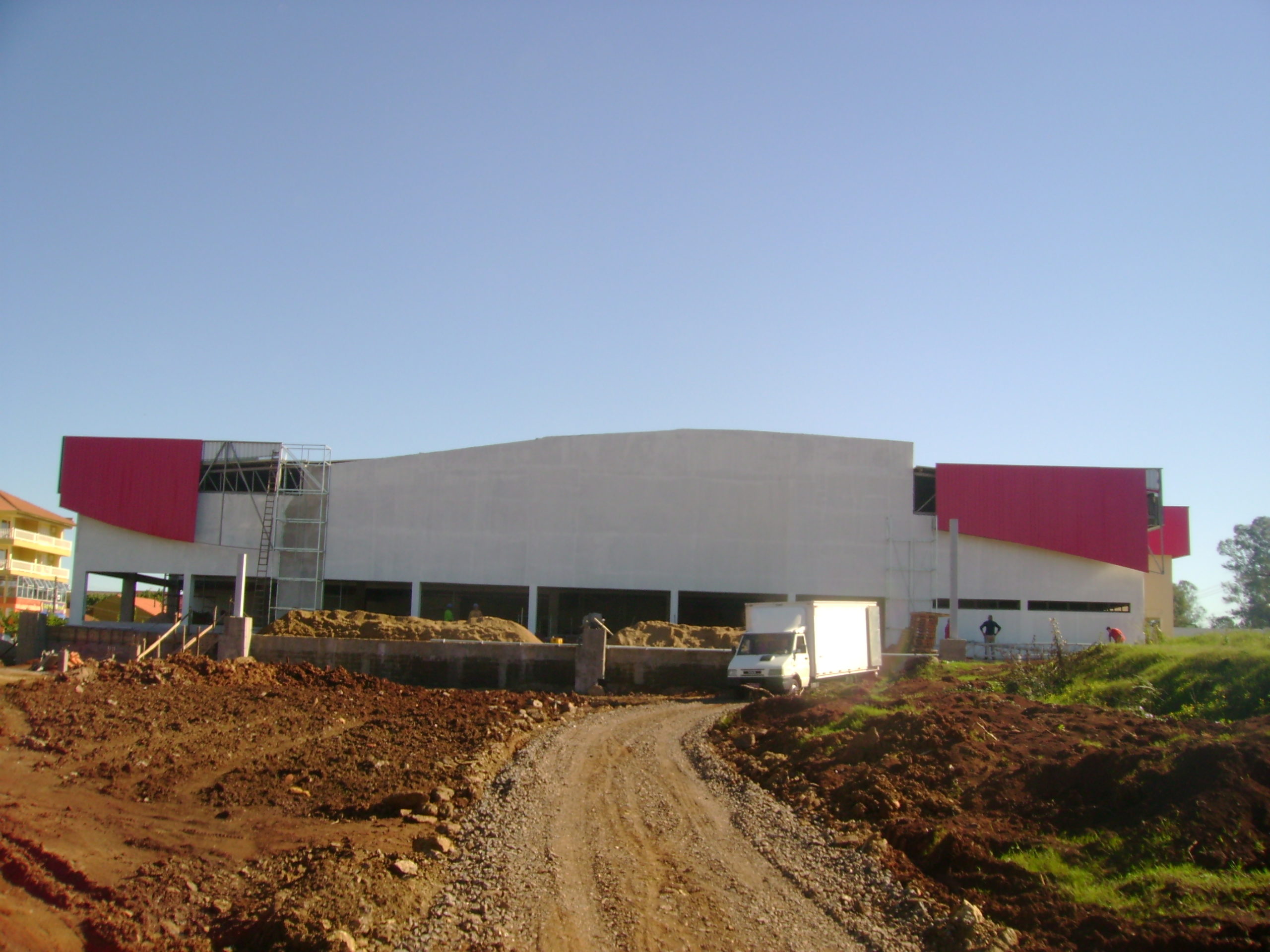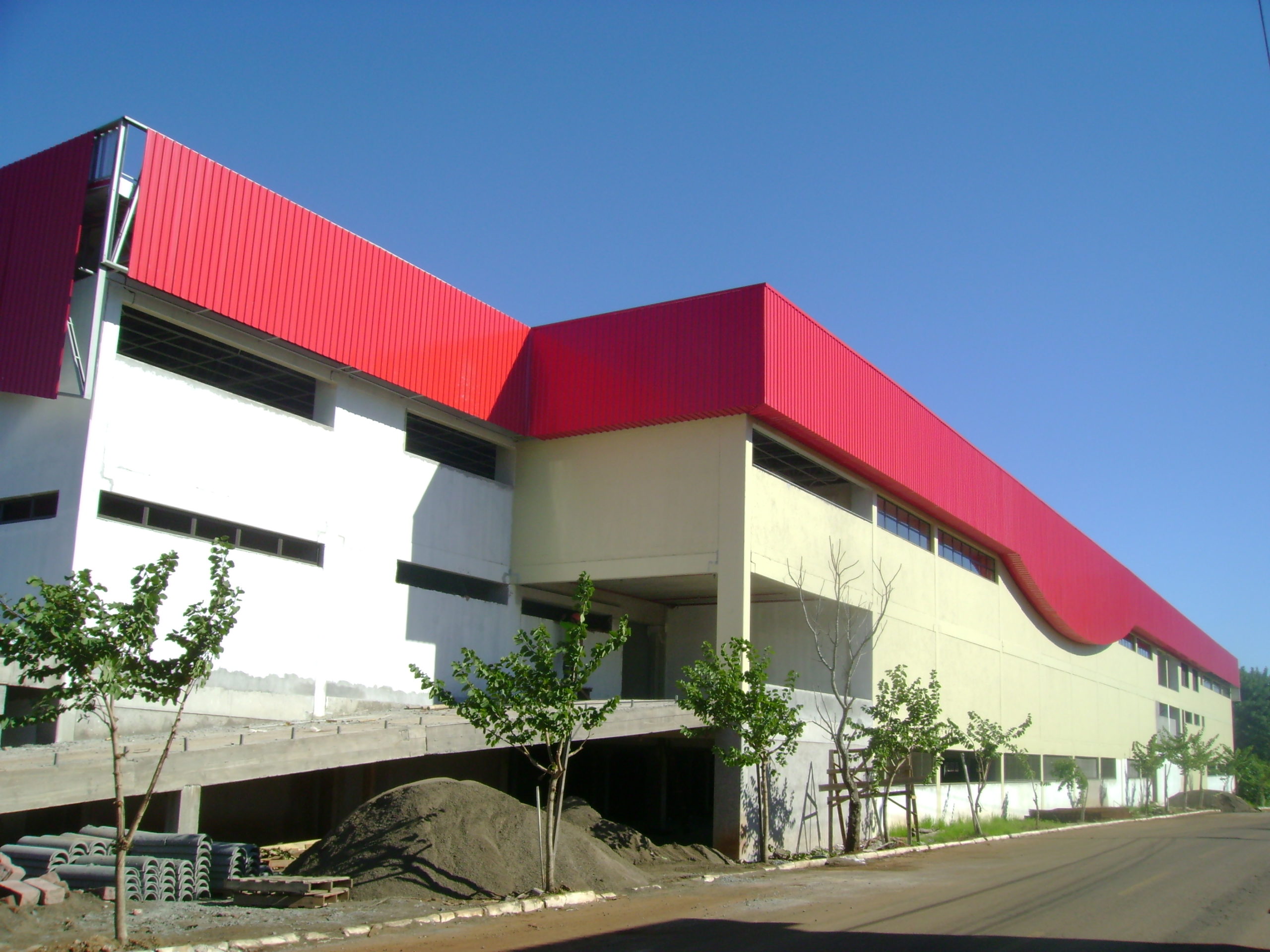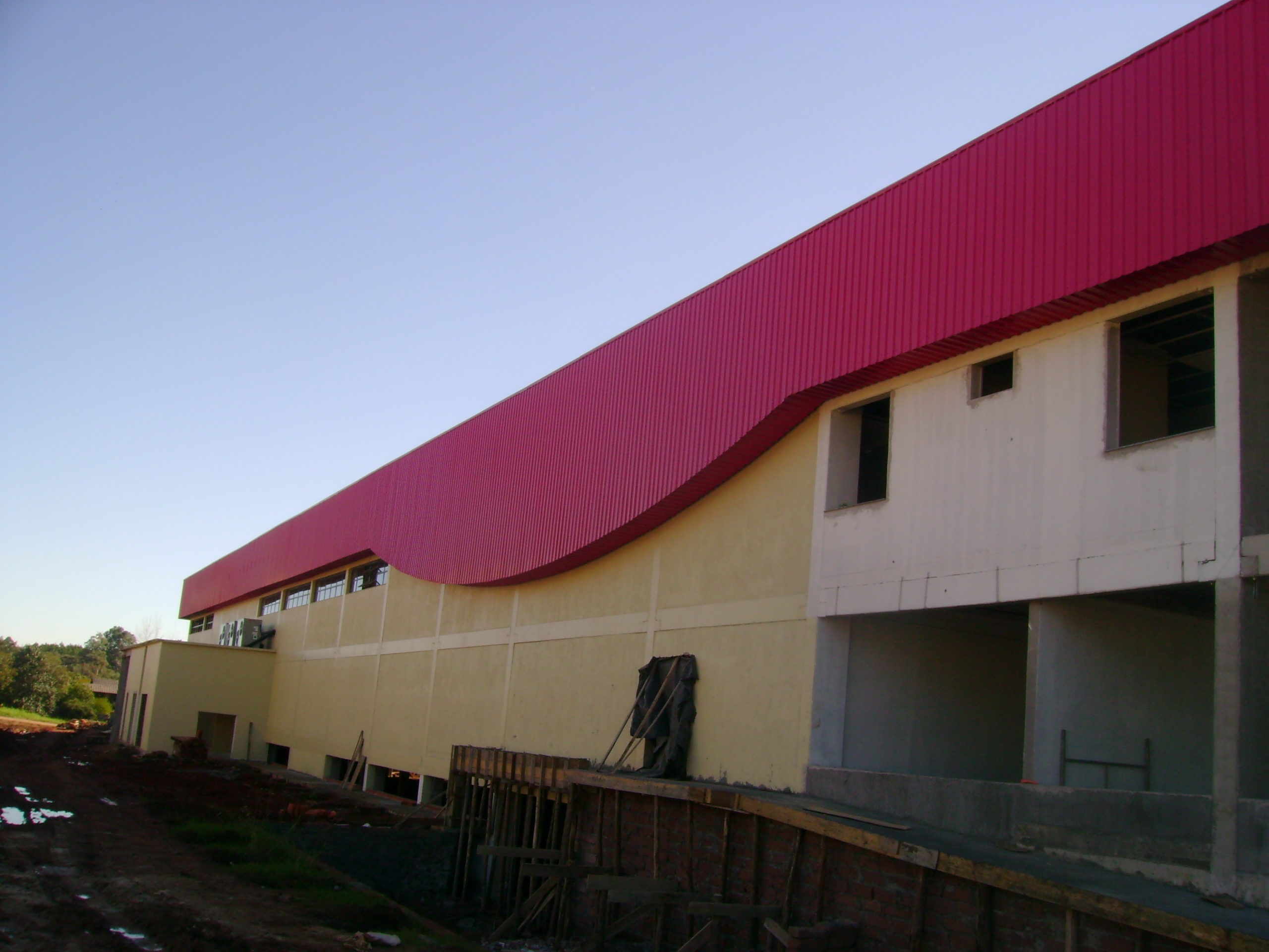 Obra Pré-moldada em dois pavimentos e mais mezaninos com área total de 11.791,35m², com estrutura pré-moldada em concreto e cobertura metálica.